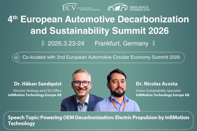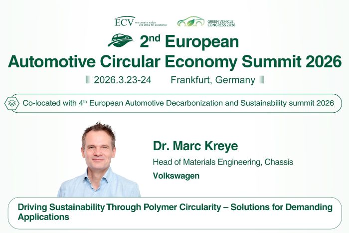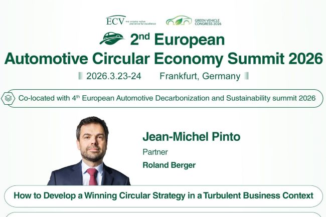 Following the successful European Decarbonization and Sustainability Summits in 2023, 2024 & 2025, ECV will upgrade the summit to the European Green Car Congress, including two parallel summits: the 2nd European Automotive Circular Economy Summit & the 4th European Automotive Decarbonization and Sustainability Summit, to fully respond to the opportunities and challenges brought about by the green transport transformation.