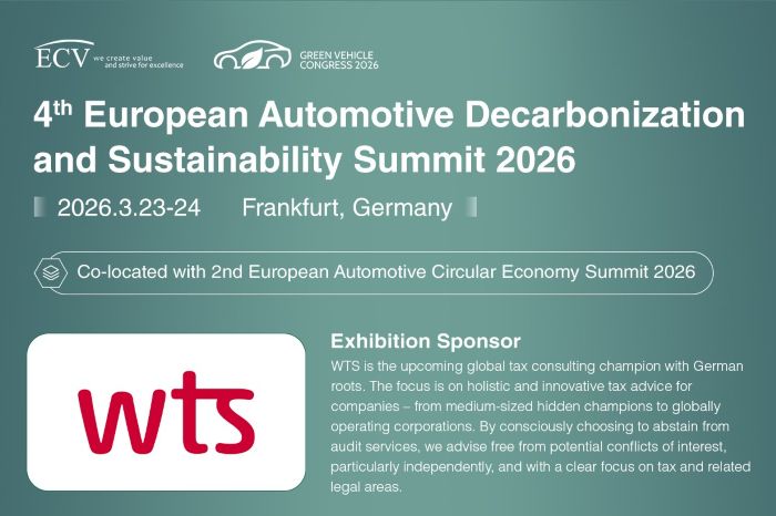 Following the successful European Decarbonization and Sustainability Summits in 2023, 2024 & 2025, ECV will upgrade the summit to the European Green Car Congress, including two parallel summits: the 2nd European Automotive Circular Economy Summit & the 4th European Automotive Decarbonization and Sustainability Summit, to fully respond to the opportunities and challenges brought about by the green transport transformation.